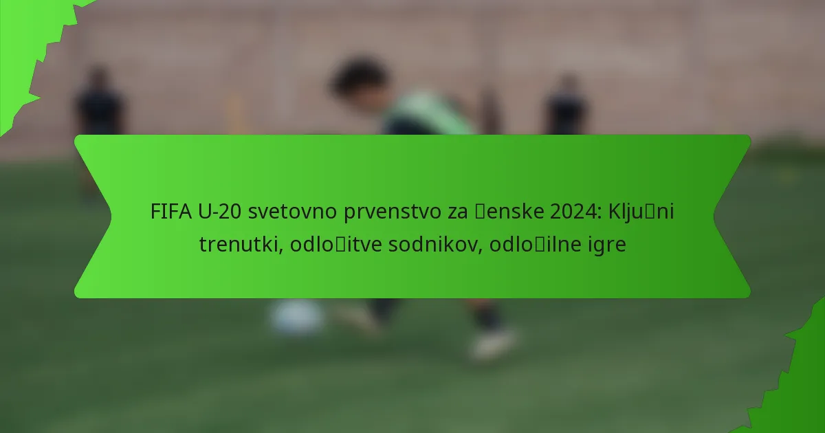 FIFA U-20 svetovno prvenstvo za ženske 2024 je bilo zaznamovano s številnimi ključnimi trenutki, ki so dramatično vplivali na izide tekem. Od ključnih golov in odločilnih obramb do spornih odločitev sodnikov, so ti elementi pokazali intenzivnost in spretnost mladih športnic, ki so se tekmovale na svetovni ravni. Turnir je poudaril pomemben vpliv sojenja in strateških iger, kar je podčrtalo visoke stave ženskega nogometa.