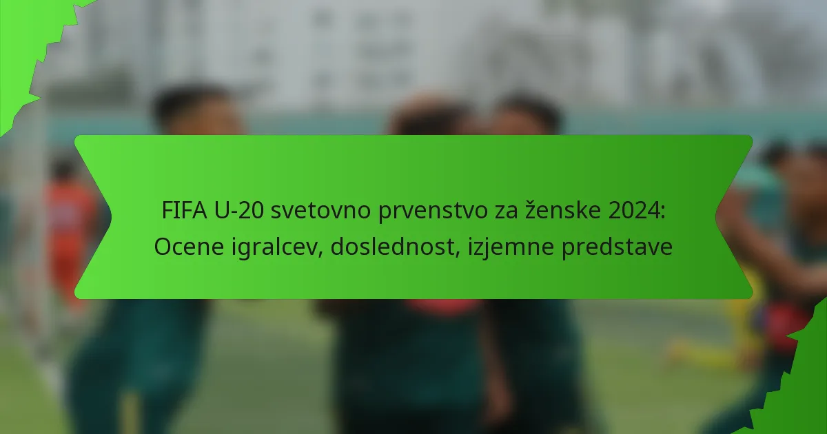 Izstopajoče predstave na FIFA U-20 svetovnem prvenstvu za ženske 2024 se nanašajo na izjemne prikaze mladih igralcev, ki znatno povečajo možnosti njihovih ekip za uspeh. Te predstave pogosto izpostavljajo nastajajoče talente in lahko vplivajo na prihodnje karierne poti, saj prikazujejo veščine, ki igralce ločijo od njihovih vrstnikov.